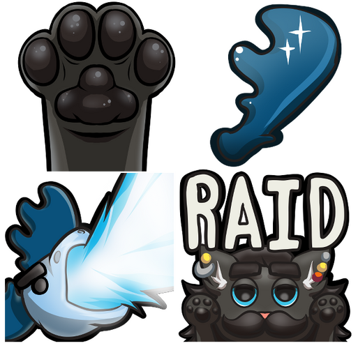 Custom Twitch Emotes, Channel Point Icon, Bit/Cheer Badges, and Sub Badges.